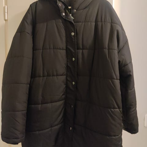 Erittäin lämmin toppatakki. Hyvässä kunnossa muuten, mutta pesussa vuoresta lähtenyt väriä, näkyy kuvissa vaaleina läntteinä. Ei näy ulospäin.
