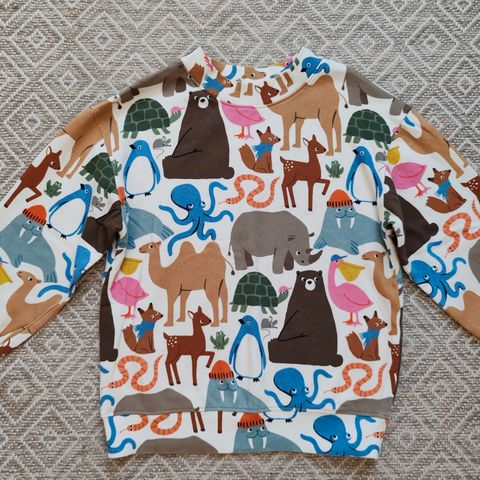 Toisessa hihansuussa pieni kulumakohta ja helmasta muutama ommel ratkennut.