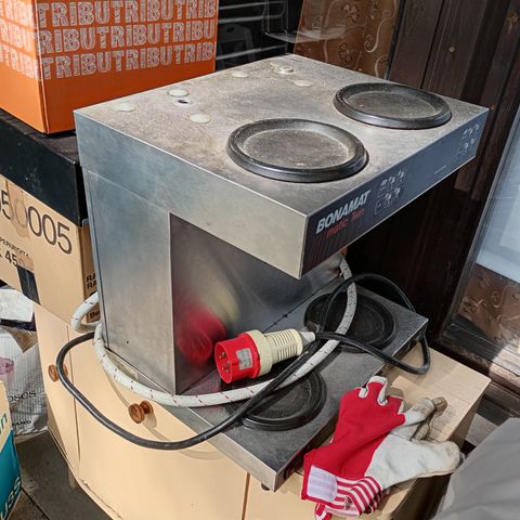 kahvinkeitin ruostumattomasta teräksestä. Soveltuu suurten kahvimäärien valmistukseen, varustettu mitta-asteikolla ja hanalla annostelua varten. Sähkökäyttöinen laite, sopii esimerkiksi toimisto- tai tapahtumakäyttöön.
