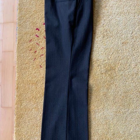 Huom: Väri on tumma ruskea, outo väri kuvissa. International Luhta design, ei tietoa vuosikymmenestä, löytyi 1970-90 -luvun vaatteiden joukosta. Villasekoitekangas, 45 % villa, 55 % polyester. Yksi takatasku ja sivutaskut, silitystä vähän kaipaisi ja vähäisissä paikoin pientä nukkaa. Kokolapussa 58, alla mitat: