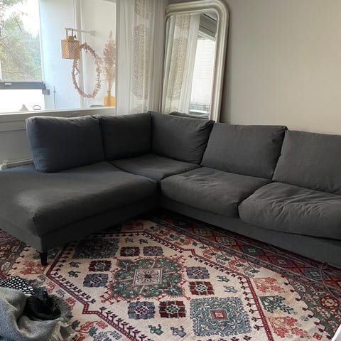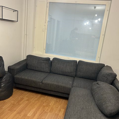 Hyväkuntoinen n. viisi vuotta vanha kulmasohva, jonka saa myös vuoteeksi. Pieni reikä yhdessä istuntyynyssä, mutta se on helposti peitettävissä.