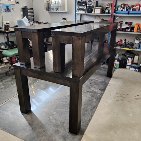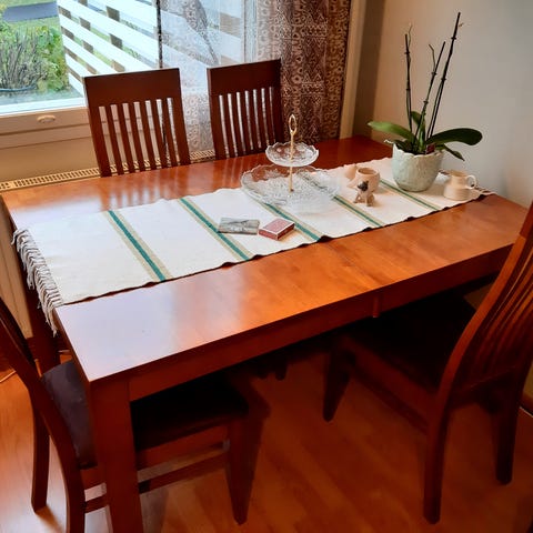 Myydään itse puusta tehty ruokailuryhmä. Todella jämäkkää tekoa. 200x85 ja pöydän korkeus 79.