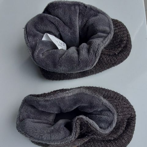 Pohjassa koko 19. Sopivat varmasti aikalailla vastasyntyneelle. Nämä ovat olleet vain kaapissa, eivät ole tulleet käyttöön. Erittäin ihanat esim. kastejuhlaan tai kylmenevään syksyyn. Sisällä pehmeä vuori. Tossujen sisällä paperia, jotta ei painu lyttyyn.