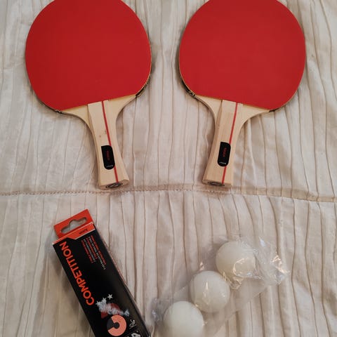 Stiga pöytätennis setti, sisältää pöydän ja kaksi mailaa. Pöytä on musta. Toinen mailoista kuluneempi. Sopii pöytätenniksen harrastamiseen sisätiloissa. 68cm x 52 cm