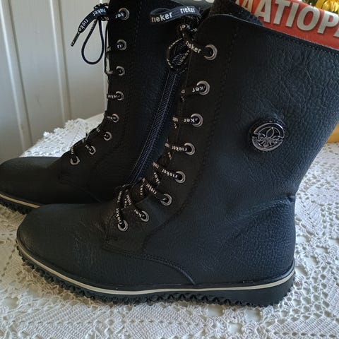 Uudet talvi saapikkaat, pohkeiden kohdalla joustavaa materiaalia. Hyvät jalkaan, kuten riekerit aina, suht leveä lesti.Mustat kuvassa jotain varjoa. Virheettömät laitan lisäkuvia halutessa. Hinta kaupassa 149€