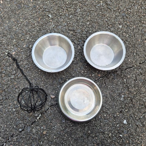 Kolme heinähäkkiä ja pallo.