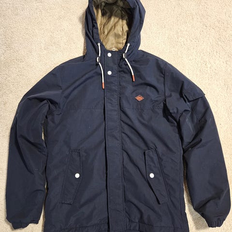 J&J:n takki, toisessa olkapäässä pieni repeämä.