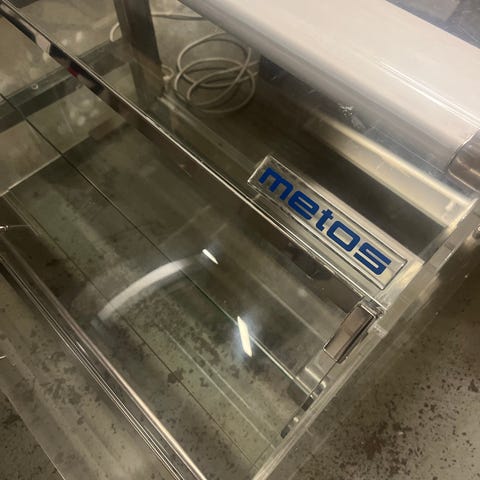Metos lasivitriini, valmistettu ruostumattomasta teräksestä. Lasivitriinissä on kaksi hyllytasoa Soveltuu elintarvikkeiden esillepanoon ja säilytykseen. Väri: hopea. Materiaali: ruostumaton teräs ja lasi.