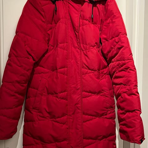 Kaunis pintakuviointi kankaassa.Tätä mallia ei enää myynnissä. Ollut vähällä käytöllä. Pituus olka-helma 90cm. Kainalo-kainalo 64cm.Hiha kainalosta hihansuuhun 55cm.Pestyx2, vetoketju ehjä, ei kulumia, irroitettava huppu.