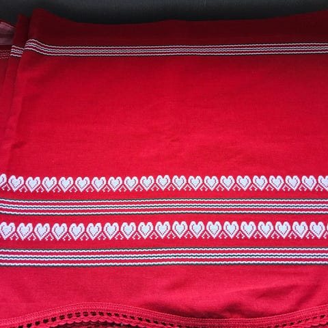 Kaunis kuosi. Kappaan ommeltu tankoon kiinnityskuja. Vahva materiaalia, puuvillasekoite.