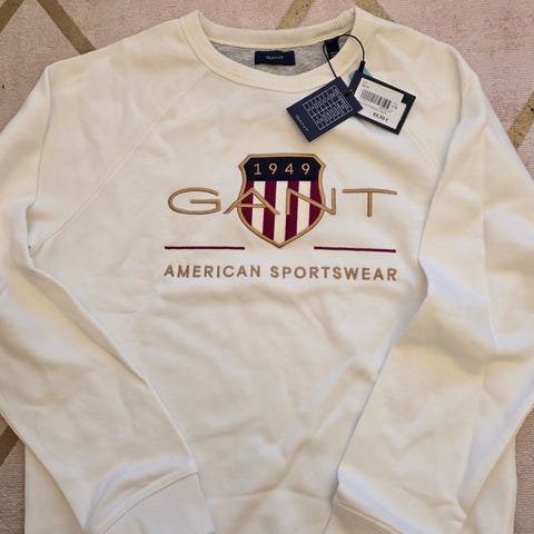Siisti harmaa Ganth gollege. Koko S. Ehkä ennemmin 160-168 cm. Kauluksessa, hihoista ja helmassa resoori. Hyvä laatuinen, pehmeä, nukaton, siisti, tahraton pusero. Kuvassa näkyy pieni lähes huomaamaton hihan resorin purkauma saumastaan. Tarkka ompelee sen kiinni. College palvelee paremmassa niinkuin arki käytössäkin. Uuden veroinen