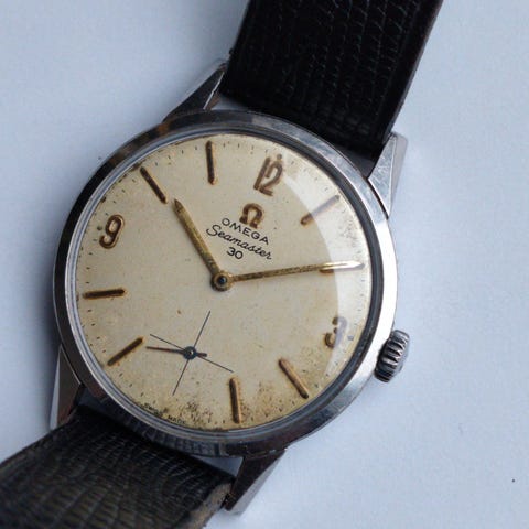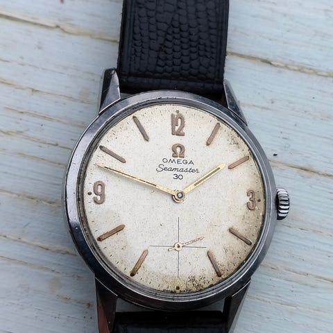 Nätti Vintage Omega seamaster vetokello. Cal 285, vuosimalli 1960. Omegan oma nuppi. Taulussa pikkuisen patinaa ja seamaster teksti vähän heikko. Halkaisija nupin vierestä 35.5mm. Toimii moitteettomasti.