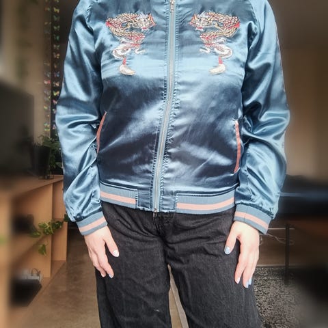 Suomalaisen Runway-merkin takki koossa 42, on oversize tyylinen joten menee varmasti tästä isompikokoiselle, olen itse kokoa L/XL. Katsothan mitat kuvien joukosta. Takki on väriltään tummansininen. Malli menee helposti miehelle tai naiselle.