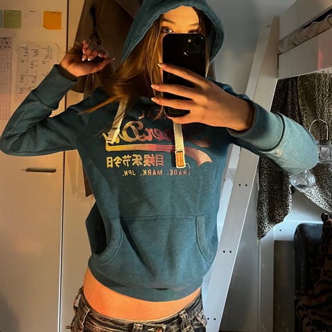 Superdry naisten huppari vaaleanpunaisena, koko S. Hupparissa on vetoketju edessä, säädettävä huppu ja mustat yksityiskohdat, kuten kiristysnauhat ja hihassa oleva logo.