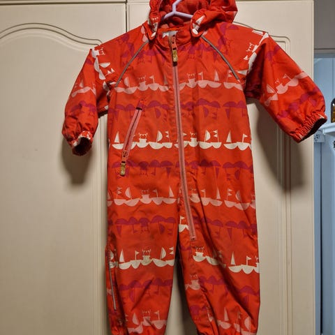 Reima eläinkuvioinen unisex lasten haalari, koko 80. Haalari on väriltään kirjava ja valmistettu polyesteristä sekä fleecevuorella. Soveltuu lapsille ja tarjoaa suojaa viileämmissä olosuhteissa. Välikausihaalari. Pieni kuluma vasemman polven reunassa, näkyy kuvassa 6. Muuten haalari on ehjä. EDIT Kulumakohta korjattu ja haalari pesty.
