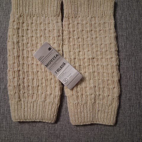 Myydään Papun säärystimet, koko kids onesize. Luomupuuvillaa. Ei olleet käytössä, silti joku tummentuma säärystimen alaosassa. Uskon sen lähtevän pois.