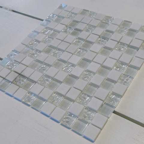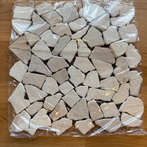Seinälle vaaleaa marmori mosaiikkia. Laatikko 25€. Laatikossa 1,09m2. Yhteensä siis 13 m3. Koko 12 laatikon hivakka 200€.