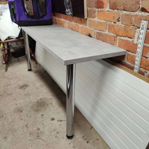 Kokoontaittuva 8-kulmainen pöytä. Halkaisija 54cm, korkeus 76cm. Nouto, käteinen.
