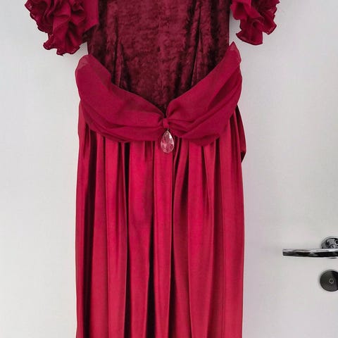Mekon yläosa läpinäkyvä kukka yksityis kohdilla. Helma kimaltava ja aika pitkä. 175 senttiselle varmasti sopiva, mutta helppo lyhennettävä.