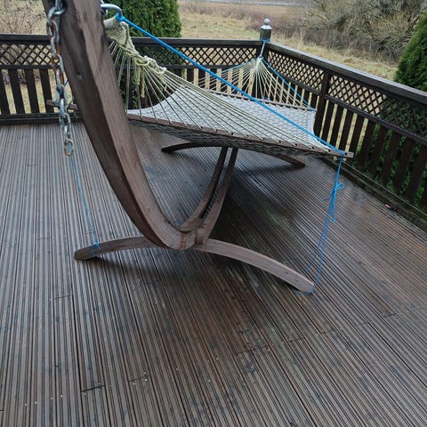 Valitettavasti minulla ei ole kuvaa kootusta keinusta.