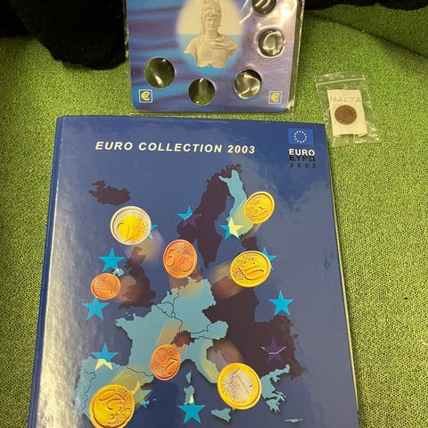 Kuvan kansio Eurokolikoineen. Laskin että rahallinen arvo yli 66€.
