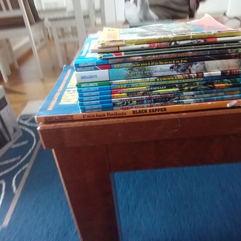Kuvan mukaset kirjat kaupan kannet kuluneita osassa jotain kirjoituksia Tarjoa