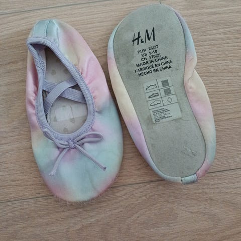 Ei varsinaisesti balettiin vaan esim juhlatilaisuuksiin sopivat tossut. Koko 26/27, merkki HM. Ehjät, vähän kuluneet.