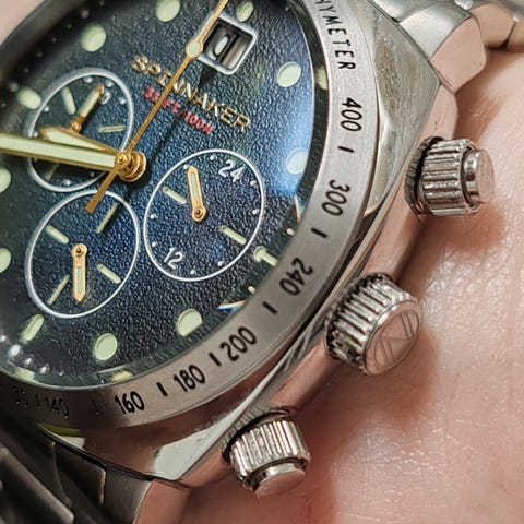 Myytävänä aivan uusi ja viime syksynä ostettu käyttämätön harvinainen Spinnaker kronografi. Full set kuten kuvasta näkyy. Mieluiten vain nouto mutta lähetyskulut ostajalle. Vesitiiviys 100 m. Myyn koska jäi kuitenkin vaille käyttöä. PS. Tappiolla menee