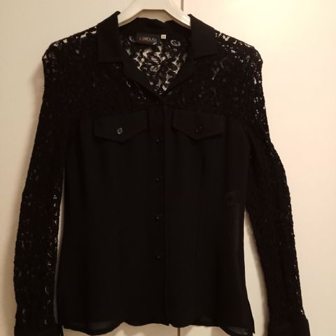 Käyttämätön musta pitsipusero, kokoa S. 90% polyesteriä ja 10% elastaania.