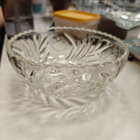 Lasinen kirkas tarjoilukulho esim. salaatille, pastalle yms. Korkeus 15 cm, halkaisija 28 cm.