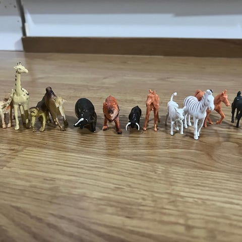 Kasa eläimiä, kovasti leikittyjä osassa pintakulumaa ,mutta ehjiä.