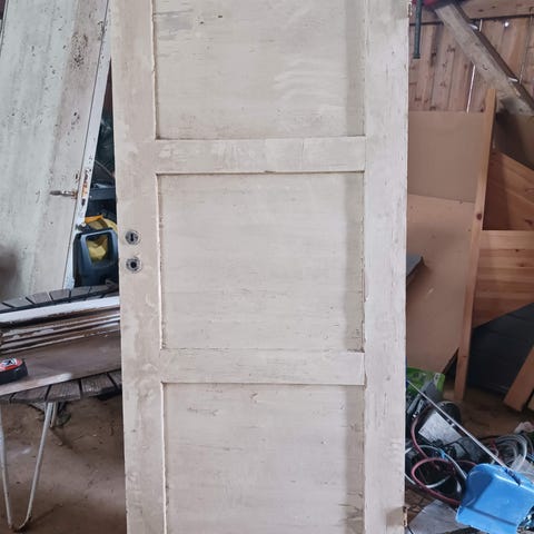 Täyspuinen ovi jossa vanerilevyt pinnassa, ovessa saranat, painike, lukko ja karmit kaikki osat ovat 50-luvulta. Mitat karmin ulkomitta 92x 207 eli on aukon mitta, karmin paksuus 14x3.5. Oven mitat 85x197. Saranat ja painike ovat toimivia. Maalipinnassa on käytönjälkiä. Painava ovi. Kaksi muuta laaka ovea toisena ilmoituksena. Tee oma tarjous