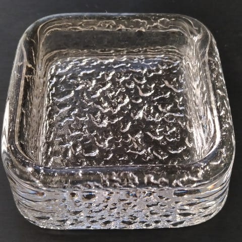 Timo Sarpanevan suunnittelema tuikkualusta / tuhka-astia. Halkaisija 24 cm, korkeus 3,5 cm. Painava.