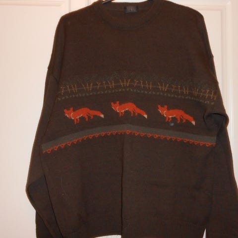 Kirjava hyväkuntoinen lämmin neulepusero syksyn väreissä (50%villaa,40%acrylic,10%polyamide).