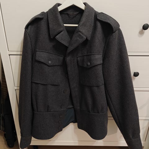 Erittäin hieno sarkakangas takki joka on ruotsin armeijan ylijäämää, tehty jämäkästä sarkakankaasta jossa Ruotsin kruunuleima, koko 96 ja valmistusvuosi 1960