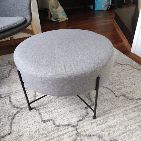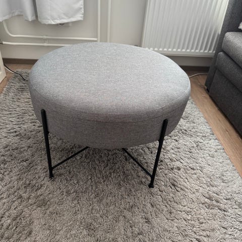 Jyskin padborg mallia oleva rahi värissä harmaa. Rahi on verhoiltu kankaalla ja siinä on mustat metallijalat. Ollut käytössä sohvapöytänä joten kunto on kuin uusi.