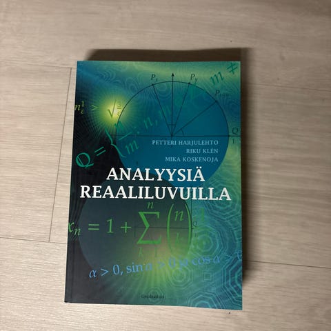 Erittäin hyväkuntoinen oppikirja Analyysiä reaaliluvuilla , Petteri Harjulehto, Riku Klen, Mika Koskenoja, korjattu 5. painos v. 2022