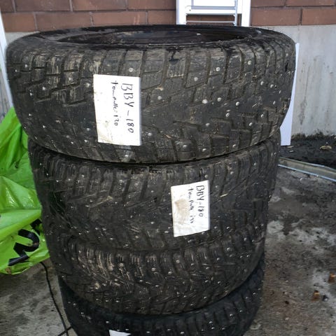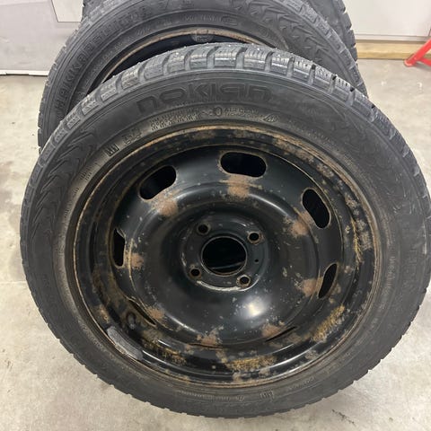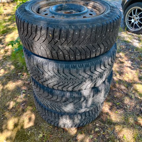 Hyväkuntoiset Bridgestone nastarenkaat peltivanteilla 4 kpl.