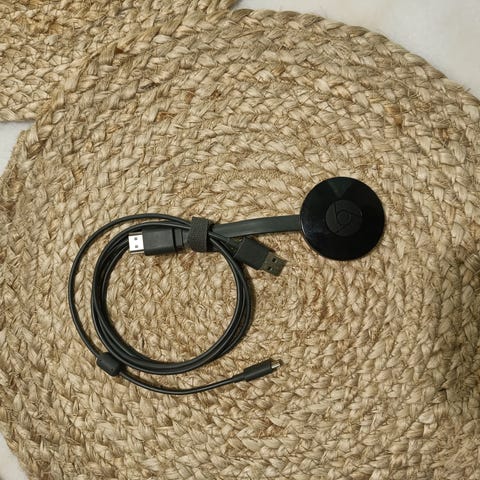 Google Chromecast langaton mediasoitin. Tässä toimii Netflix yms suoratoisto, mitkä eivät enää toimi uudemmissa malleissa.