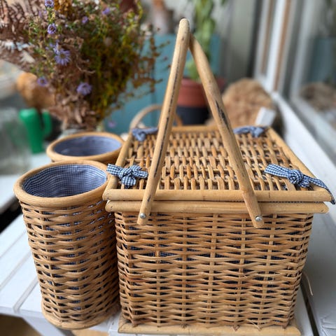 Ihana kannellinen piknikkori, ei käytetty ulkona ollenkaan