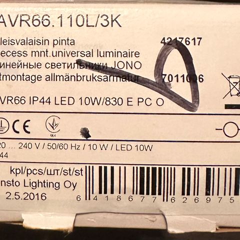 Käyttämätön Ensto valaisin. 600mm pitkä