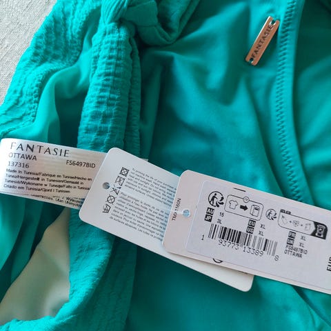 Uusi Batoko merkkinen kierätysmuovista valmistettu uimapuku ihanalla saukkoprintillä. Oli harmikseni väärän kokoinen. Hinta ollut alun perin 60puntaa ja lisähintaa veroista ja tullista.