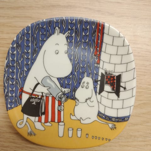 Hyväkuntoinen seinälautanen, koko 12 x 12 cm. Valmistus vuosina 1990 - 1994. Nouto tai postitus.