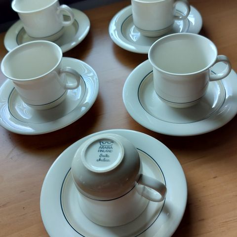 Siistikuntoinen teekuppi ja aluslautanen. Arabian Seita Arctica sarjaa. Löytyy kaksi settiä
