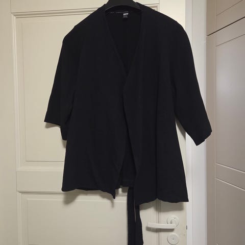 Täältä juuri kotiutunut, ei kuitenkaan tuntunut omalta, Kainon ja Ommellisen yhteistyönä tehty neuletakki.