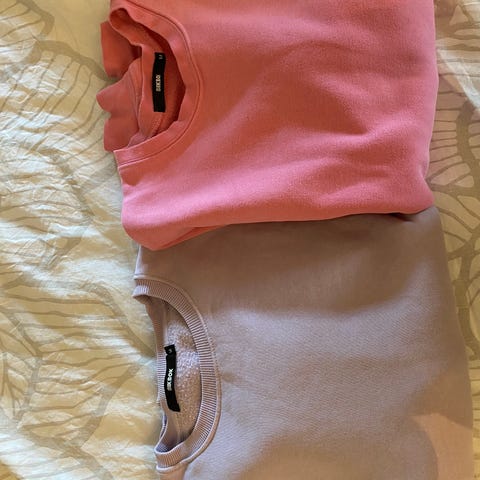 Even&Odd collegepaita. Väri liilahtava pinkki. Koko m, suht reilu mitoitus.