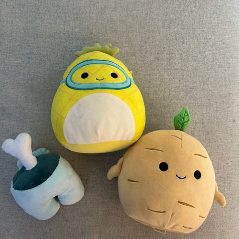 Myydään siistit ja hyväkuntoiset Among us pehmot. Olleet vain hetken hyllyllä koristeena. Yhteensä 5e