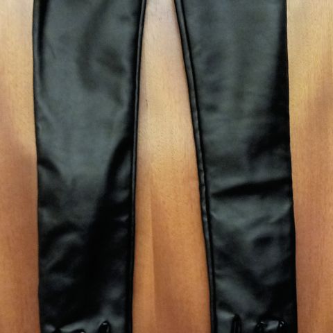 Mustat ekstrapitkät satiini käsineet. Käyttämättömät
