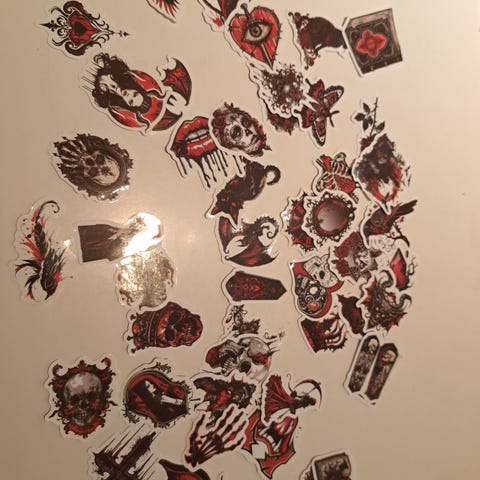 Gootti,pääkallo ja noita tarroja 50 kpl