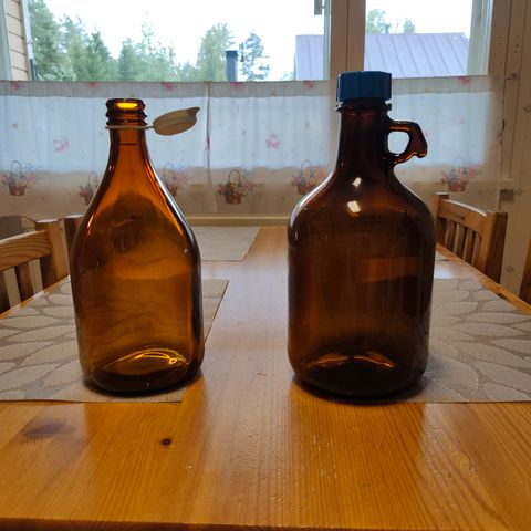 Vanhoja, ruskeita lasipulloja 3 kpl myynnissä. Koko setti 6 e.
